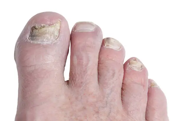- 발톱이 두꺼워지고 변색되며, 부스러지듯 갈라지는 증상이 나타납니다.