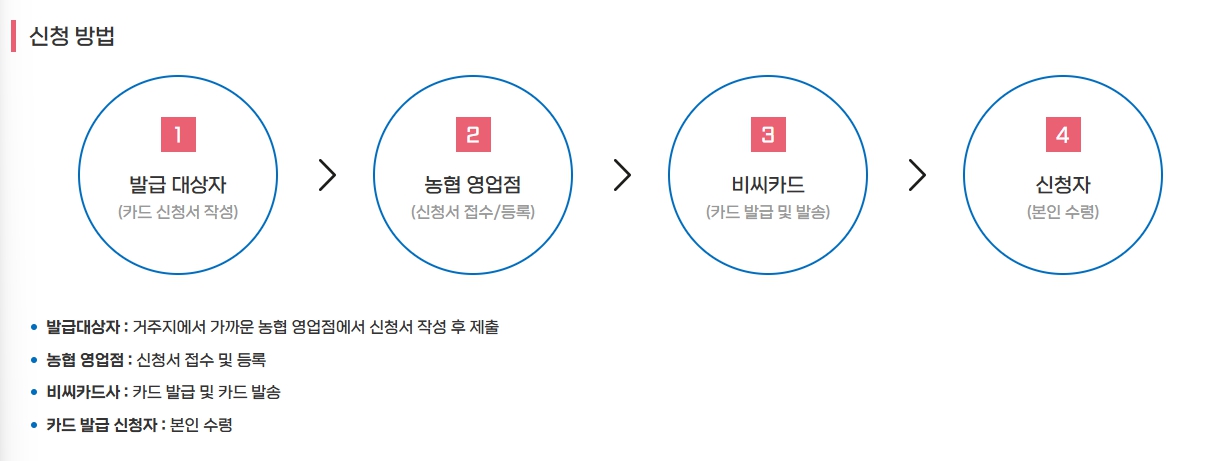가까운 NH농협 영업점을 방문하여 카드 신청서를 작성합니다