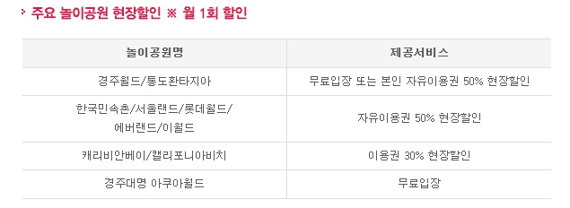 주요 놀이공원 현장할인(월 1회 할인)