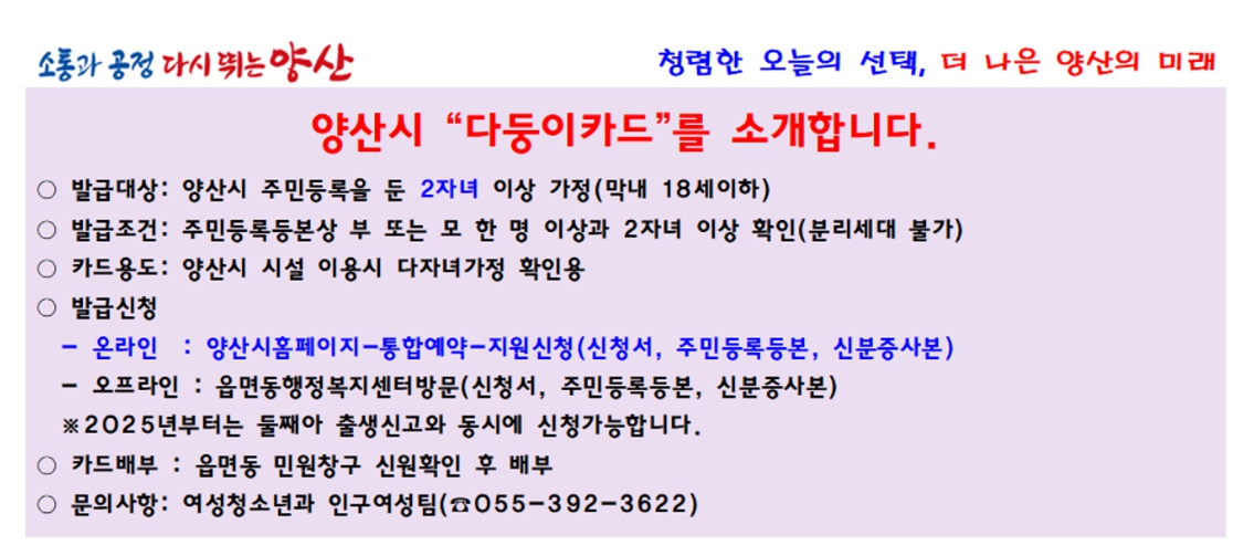 경남 양산 다둥이카드 혜택과 신청 방법 알아보기