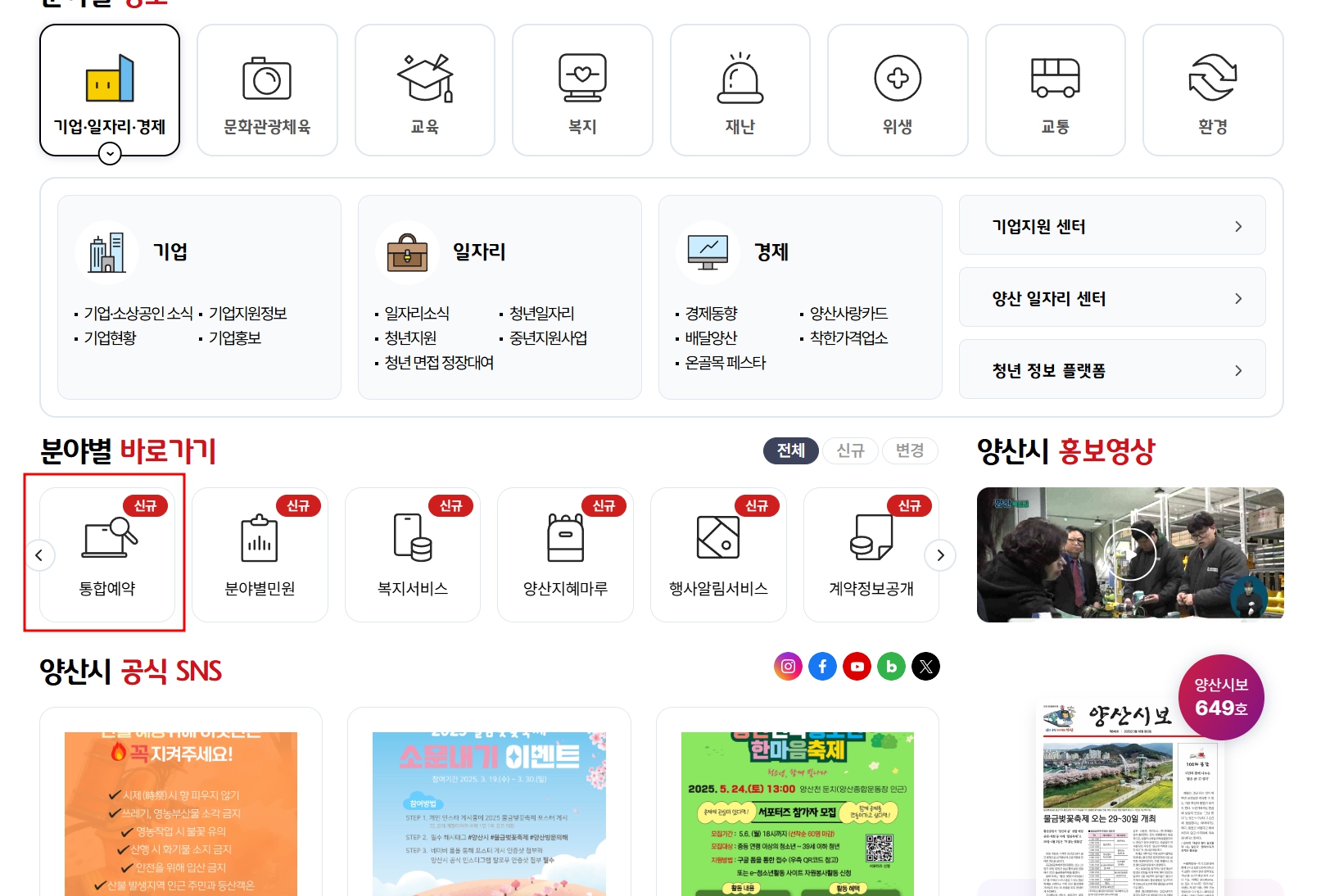 1. 양산시 홈페이지로 이동을 합니다