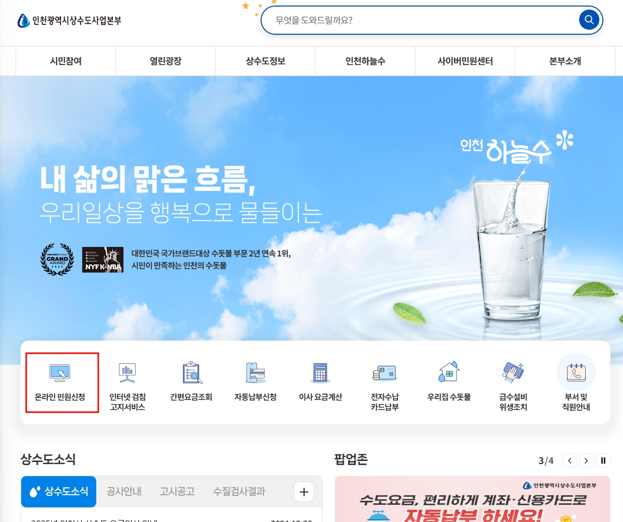 ▶ 온라인 신청 (인천시 상수도사업본부 사이버민원센터 이용)