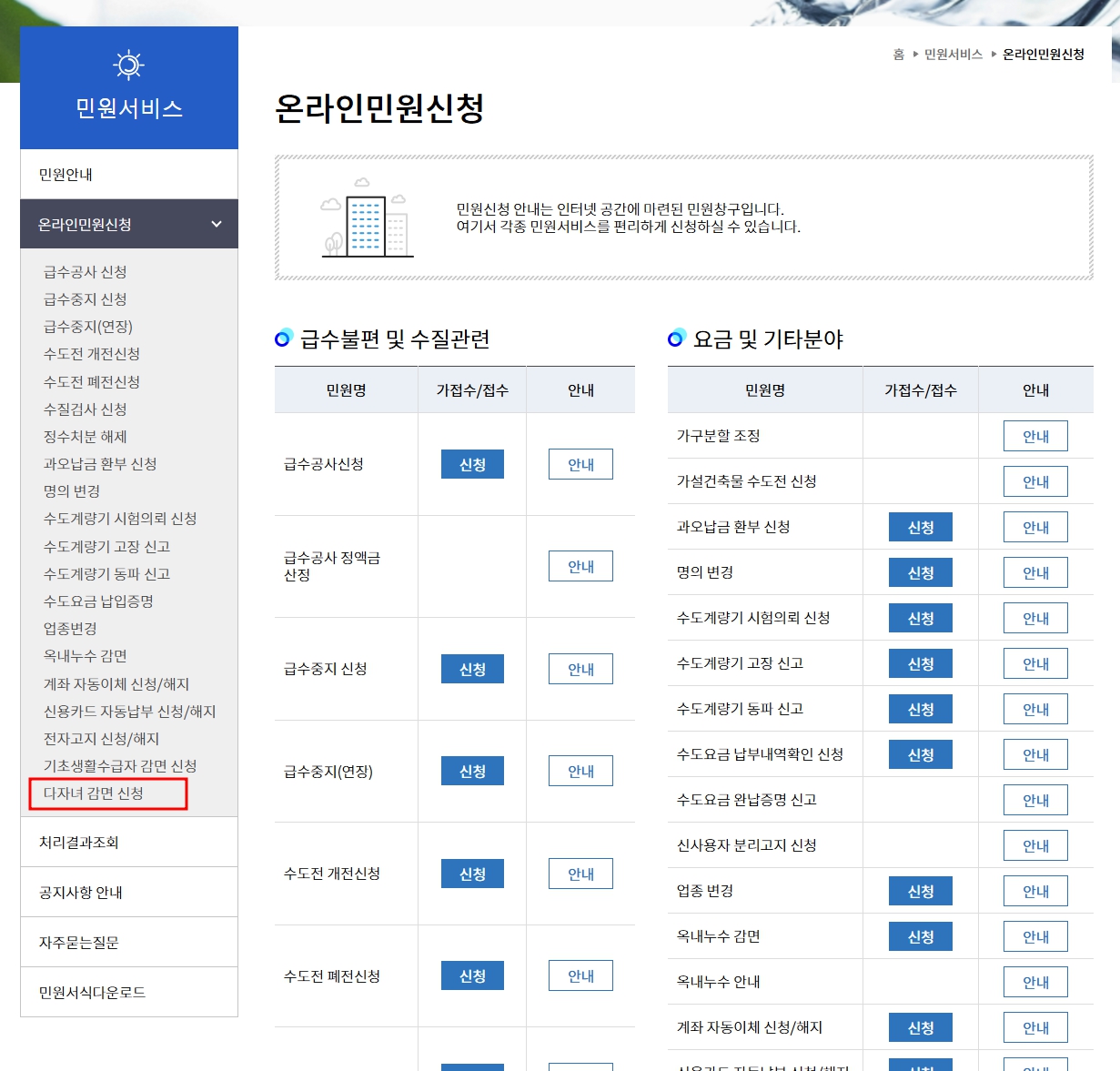 ▶ 온라인 신청 (인천시 상수도사업본부 사이버민원센터 이용)