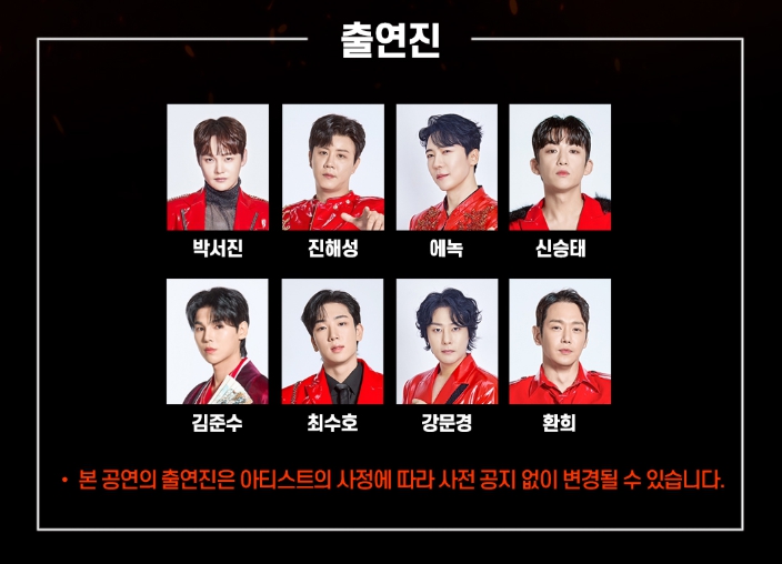 • 출연진 : 현역가왕2 1등인 박서진을 필두로 진해성, 에녹, 신승태, 김준수, 최수호, 강문경, 환희