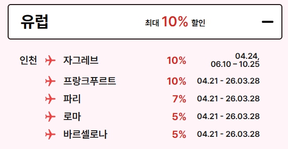 유럽 노선 전용 특가 할인