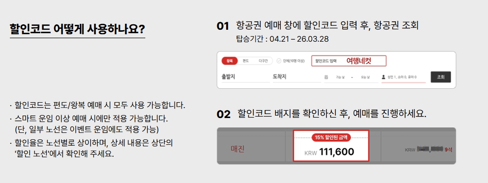 - 할인 적용은 선착순 한정으로 조기 마감될 수 있으며, 일부 운임에는 적용되지 않을 수 있습니다.