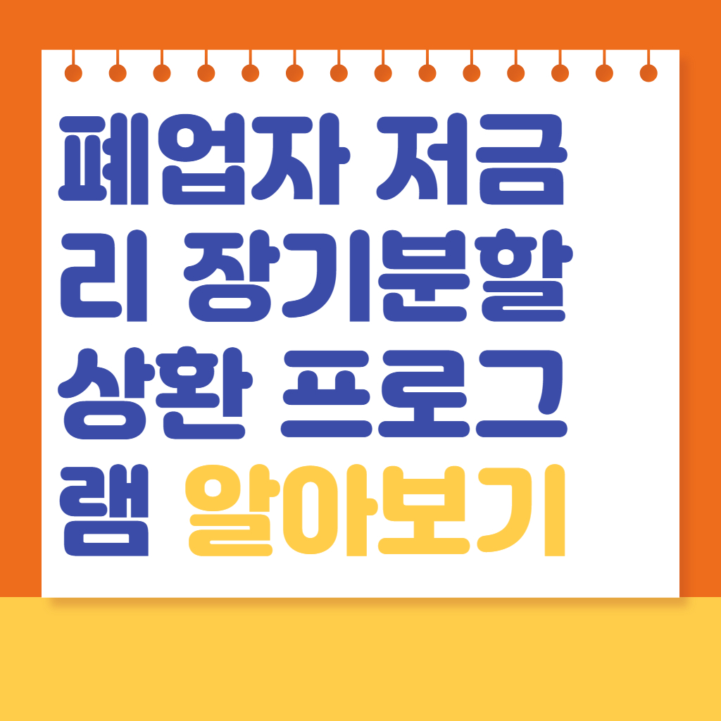 2025년 3~4월부터 시행될 폐업자 저금리 장기분할상환 프로그램은 폐업한 소상공인이나 자영업자가 기존 사업자 대출을 저금리로, 장기적으로 상환할 수 있도록 돕는 제도입니다.