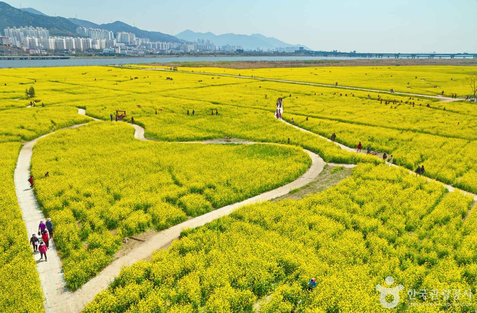 노란 유채꽃밭이 장관을 이루는 이 축제는 도심 속 힐링 명소로 손꼽힙니다.