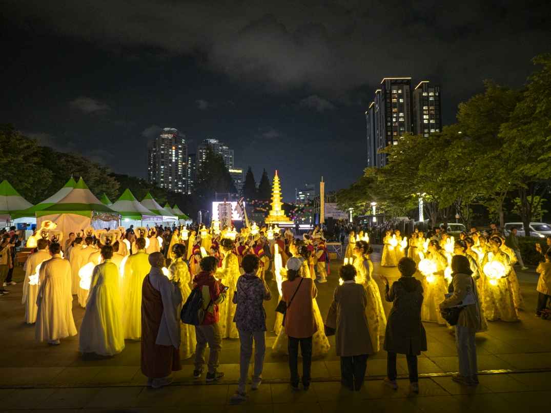 도심 속에서 열리는 대형 불교문화 행사로, 밤이 되면 형형색색의 전통 등이 광장을 물들입니다.