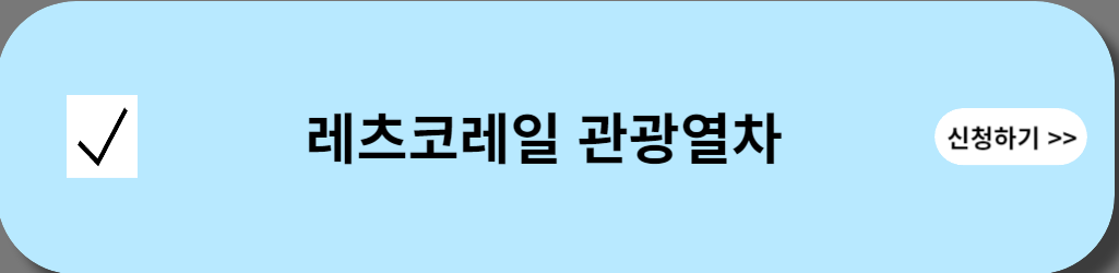 - 혜 택 : 열차 왕복 10% 우선할인 / 이용열차 운임 40% 상당 할인쿠폰 증정