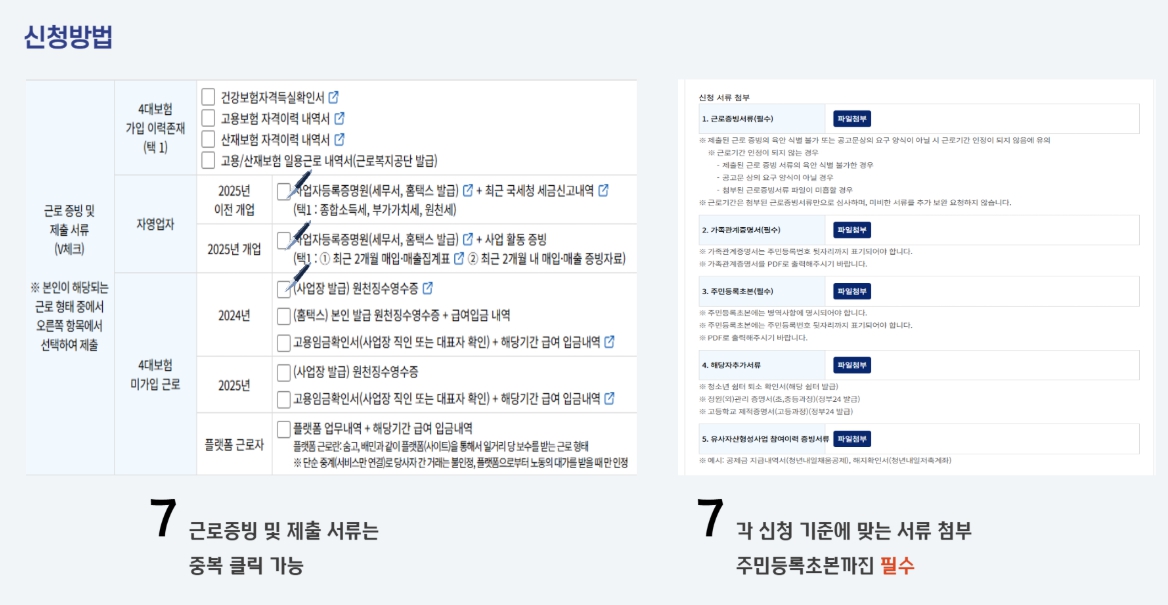 - 신청 시 정확한 소득자료, 근로확인 필요