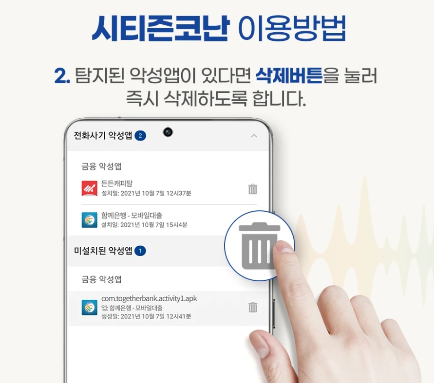 - V3, 알약 등 백신 앱으로 악성코드 검사
