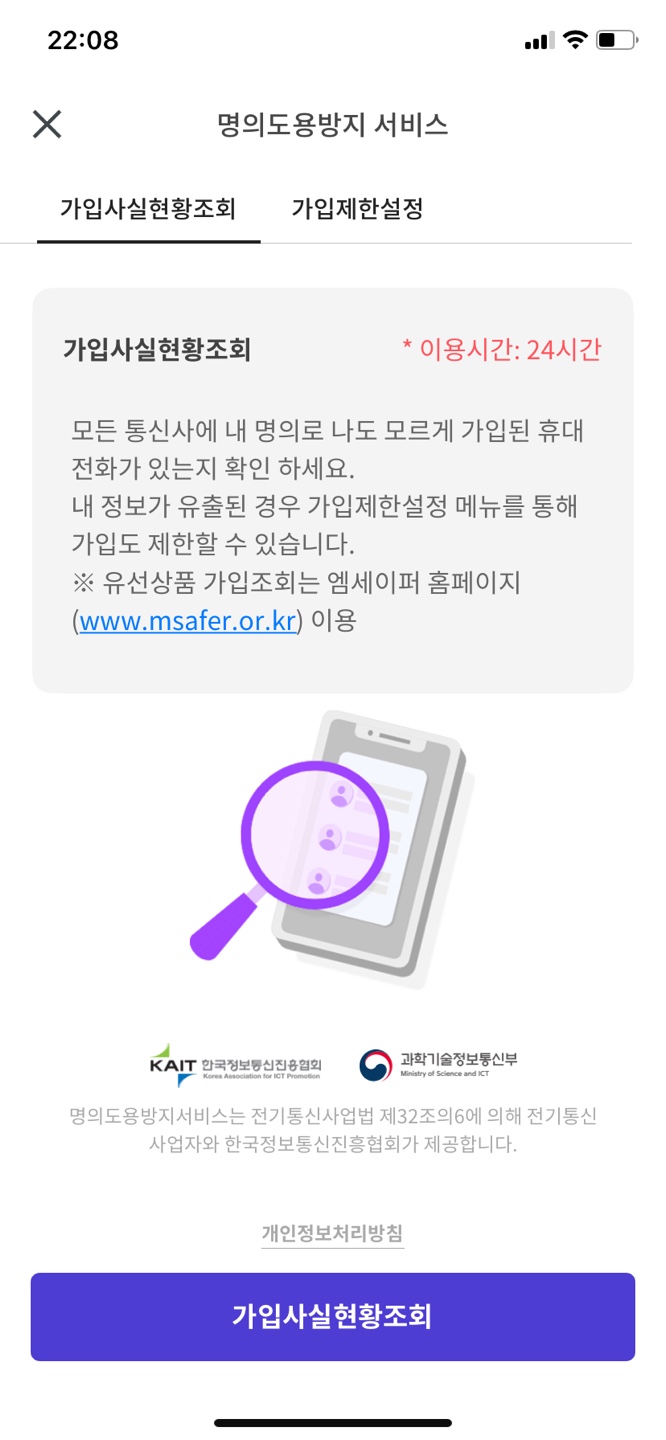 - 불법 명의도용 여부 실시간 확인