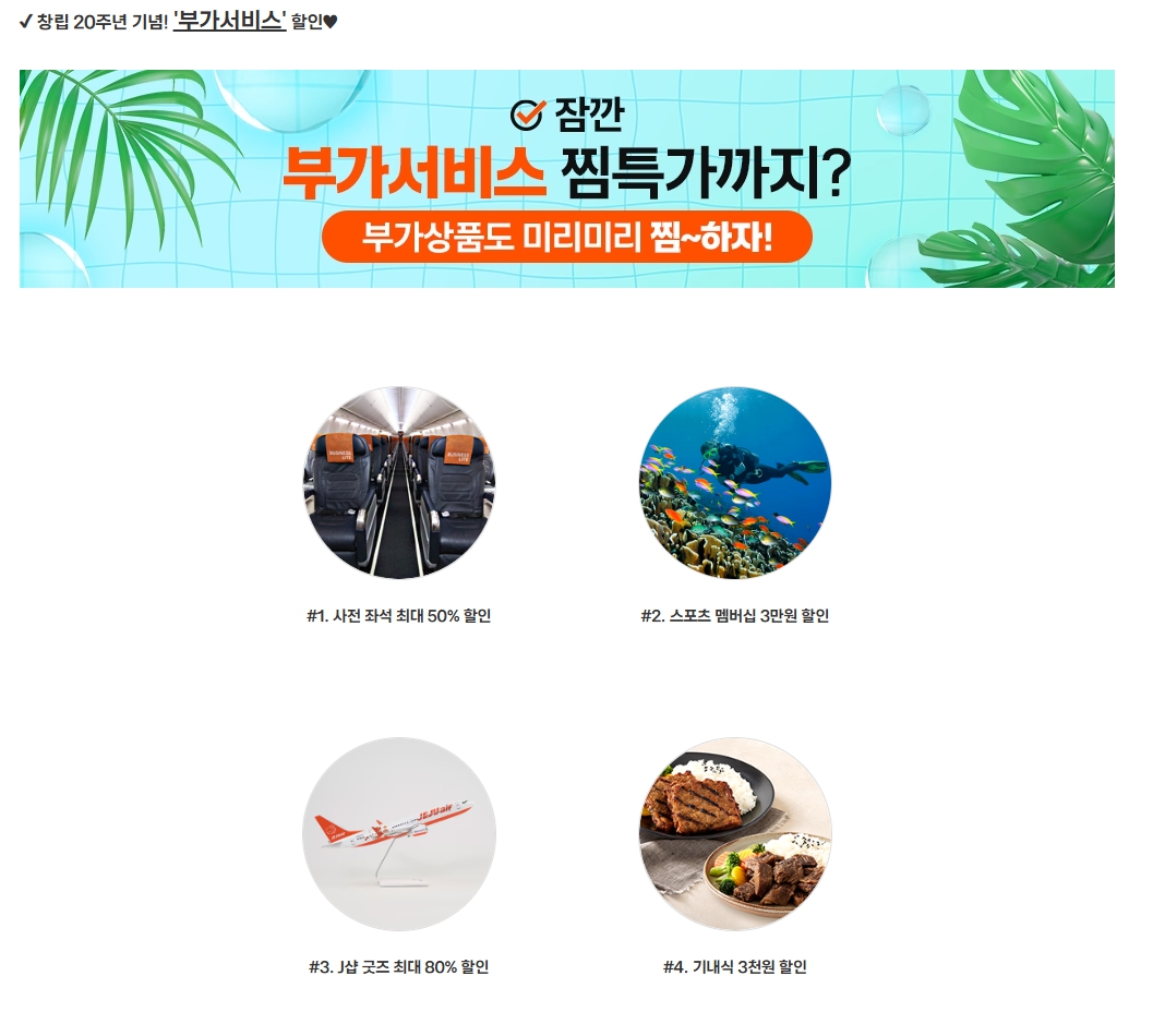 - 부가 서비스 할인 가능 (기내식 3천 원, 좌석 선택 최대 50%)