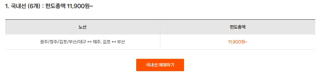 | 최저가 운임 | 국내선 11,900원~, 일본 34,900원~, 동남아 44,400원~ |