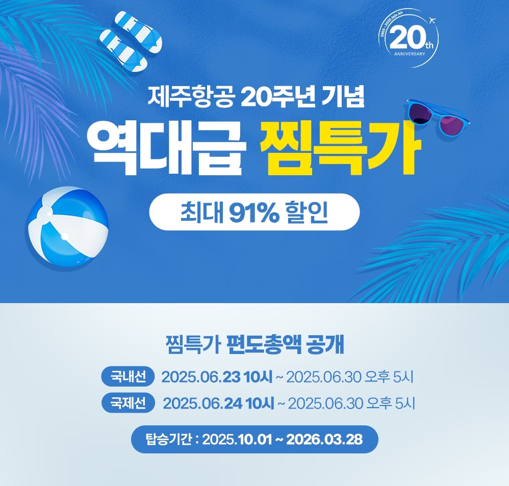 2025년 6월 한정! 제주항공의 20주년 찜특가 이벤트는