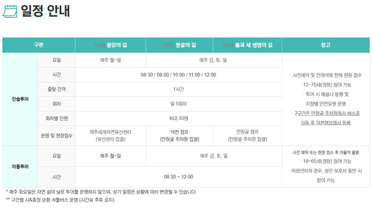 - 예약 필수 : 체력에 맞는 코스 선택 가능
