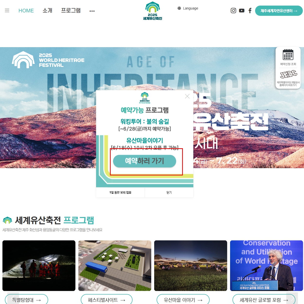 - 공식 홈페이지 접속 → 프로그램별 예약 진행