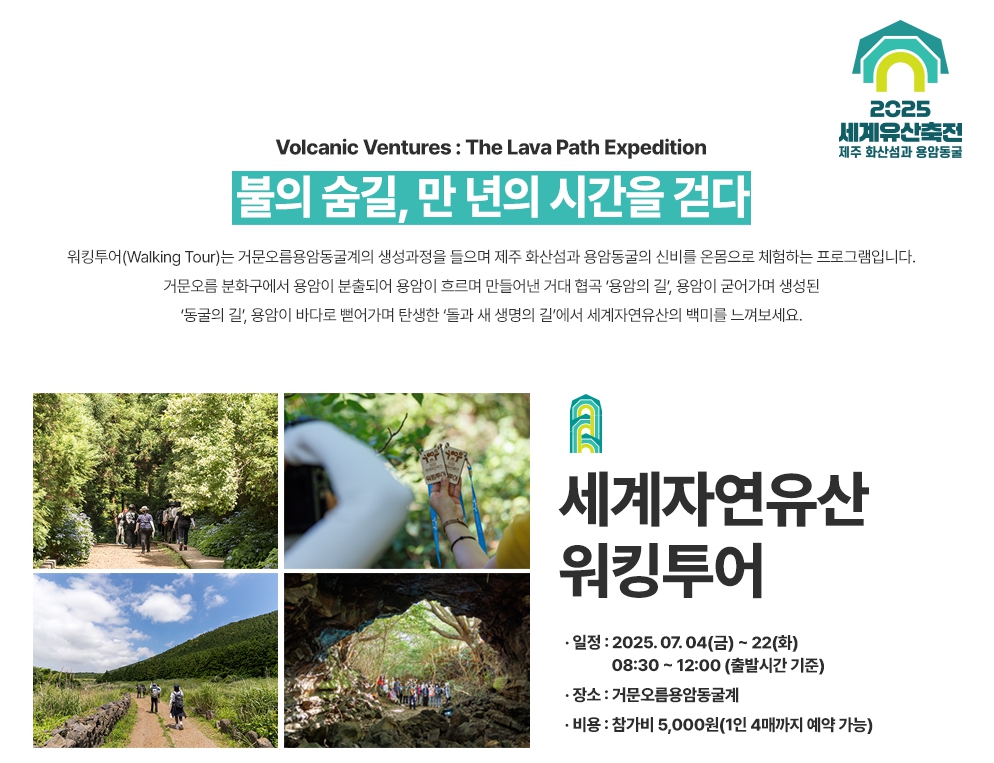 2025년 제주 세계유산축전은 유네스코 세계자연유산인 제주 화산섬과 용암동굴의 가치를 알리기 위한 국내 최대 규모의 문화·체험형 축제입니다.