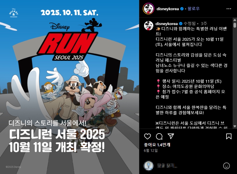 바로 ‘디즈니런 서울 2025’가 찾아옵니다.