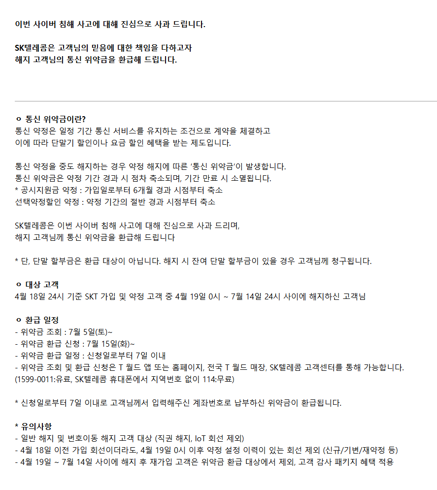 SKT 위약금 환급 및 면제에 대해서 알아보기