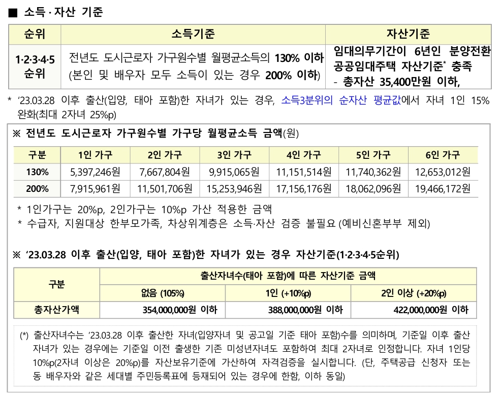 - 자격 요건 : 세대원 전체 무주택 여부, 소득·자산 기준 충족