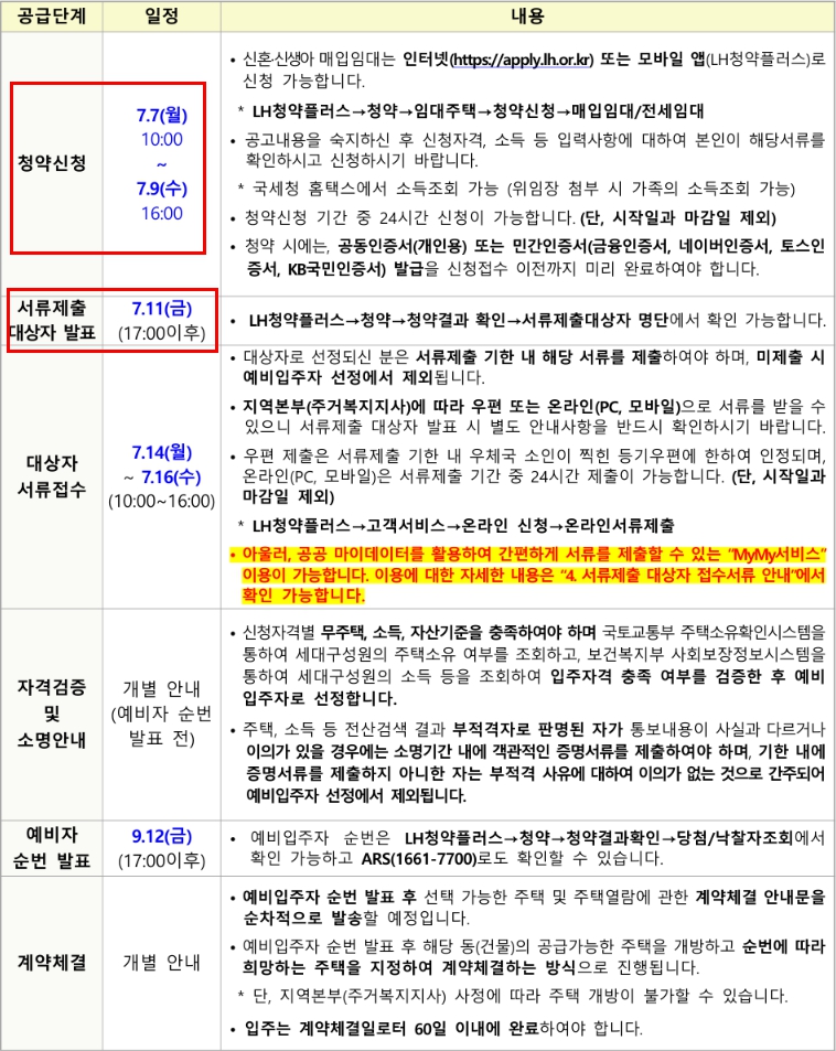 - 공고문 숙지 : 지역별 거주 요건, 우선순위 조건 반드시 체크