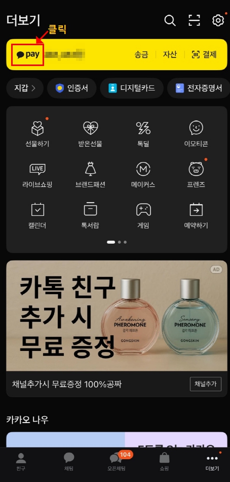 3. 더보기에서 왼쪽 상단 카카오페이를 클릭