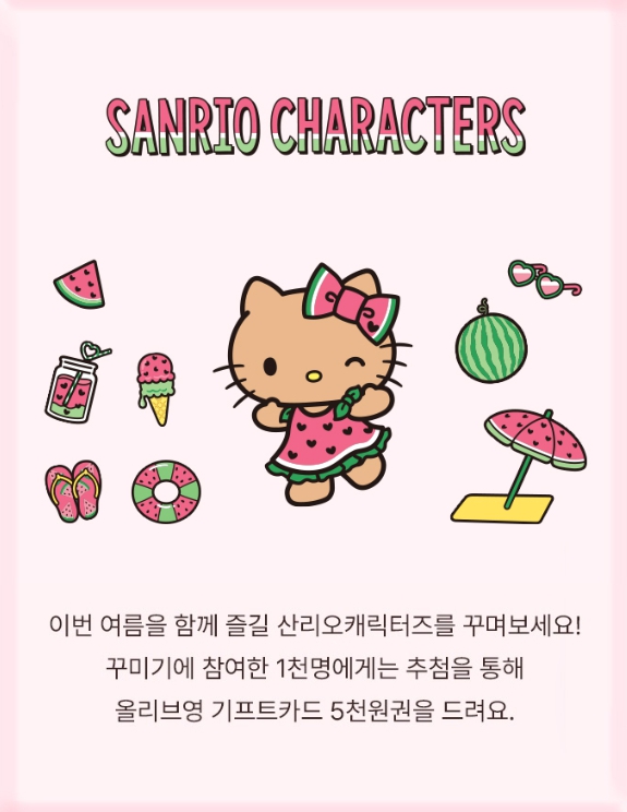 2025 여름, 여름을 사랑하는 산리오 캐릭터가 올리브영에 놀러 왔습니다.