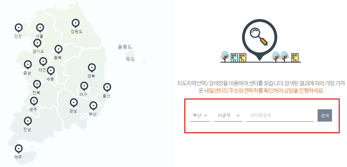 전국 어디서든 가까운 새일센터를 찾을 수 있습니다.