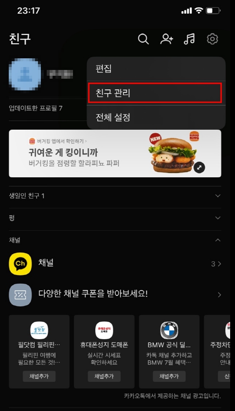 2. 친구로 추가한 카카오톡 채널 차단하기