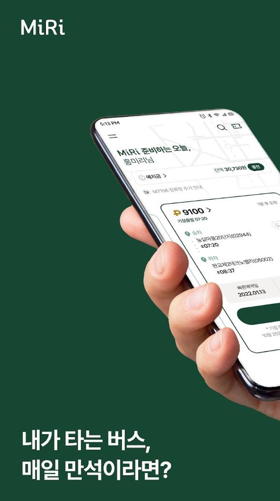 이제는 MiRi 앱으로 간편 예약하고, 정류장 대기 없이 바로 탑승할 수 있습니다.