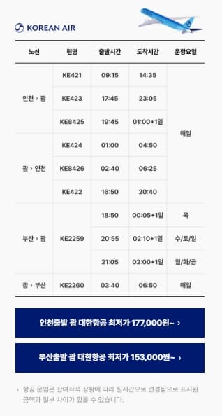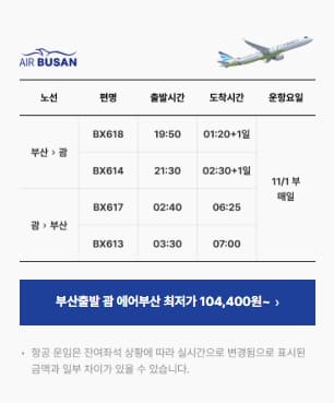 - 할인율 : 괌 노선 항공권 최대 50% (최대 20만 원 할인)