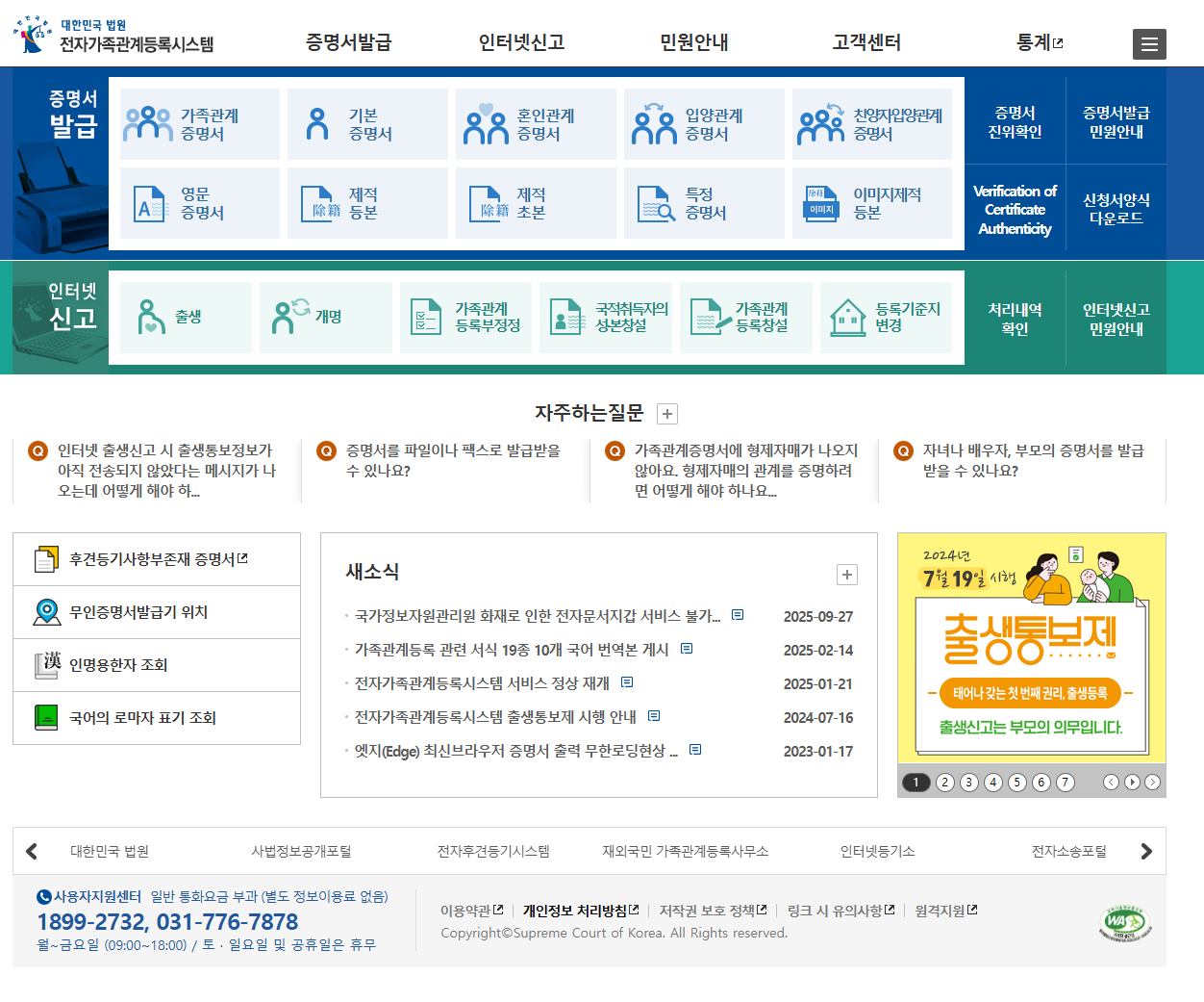 - 무인민원발급기·정부24 : 각종 증명서 발급 불가