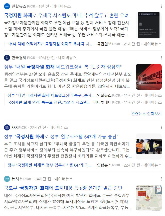 이 사고로 온나라시스템을 비롯해 총 647개 공공 시스템이 일시 중단되어 국가 행정과 민원 서비스에 심각한 영향을 끼쳤습니다.