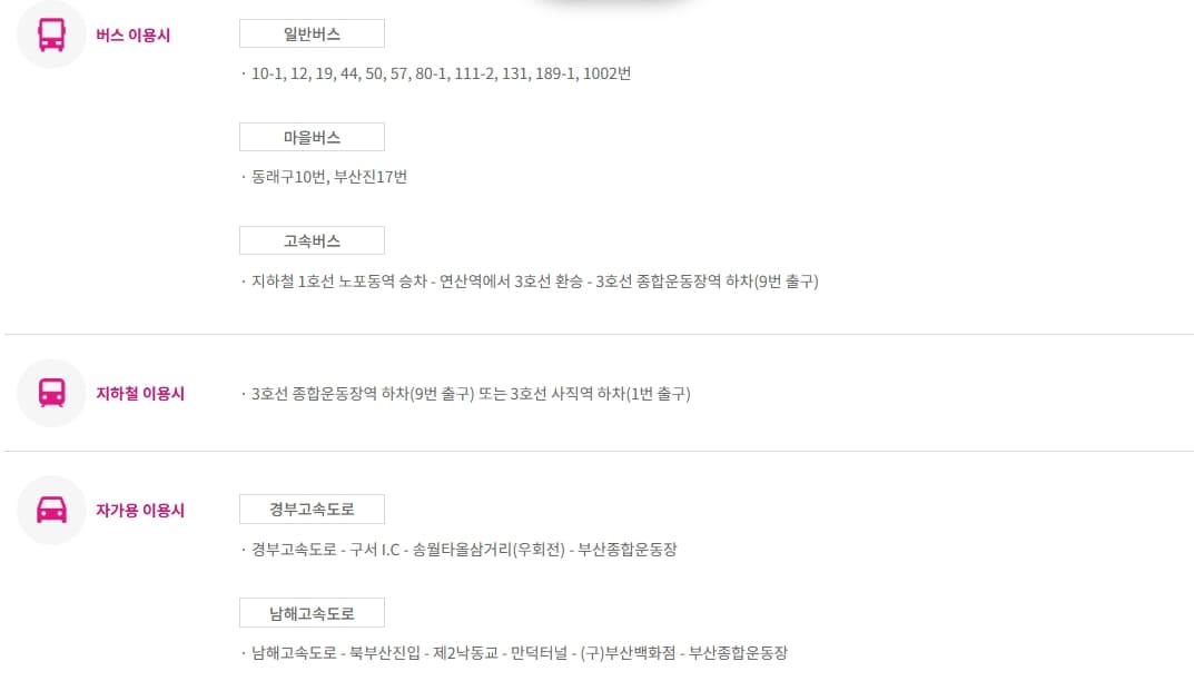 - 지하철 : 부산 도시철도 1~4호선 이용 가능
