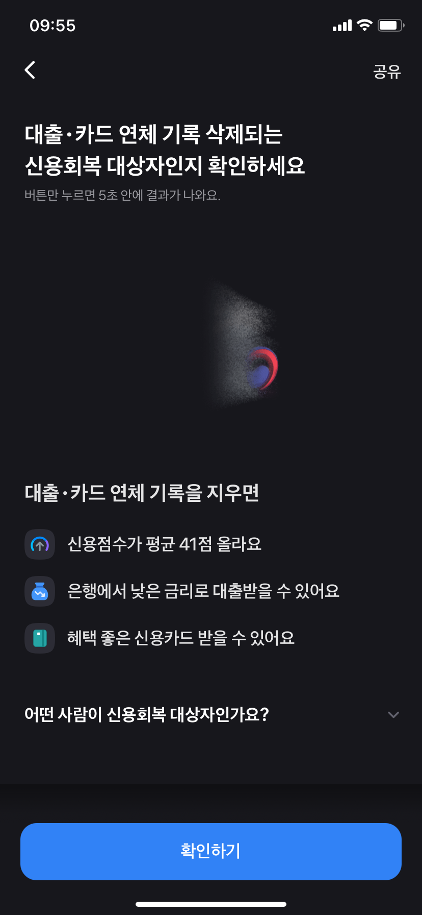 토스 앱 신용회복 대상자 조회