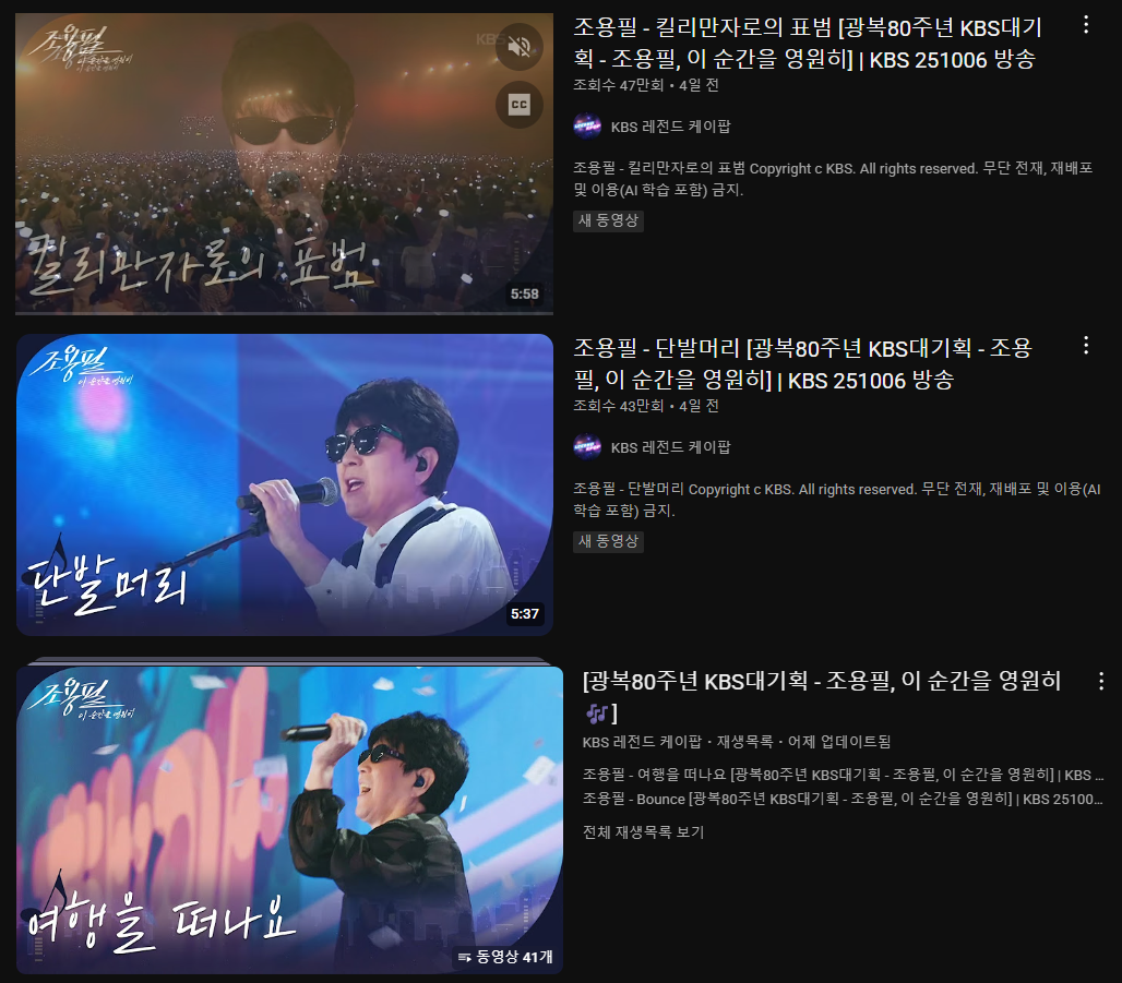 - 검색창에 ‘조용필 콘서트’ 또는 ‘이 순간을 영원히’ 입력