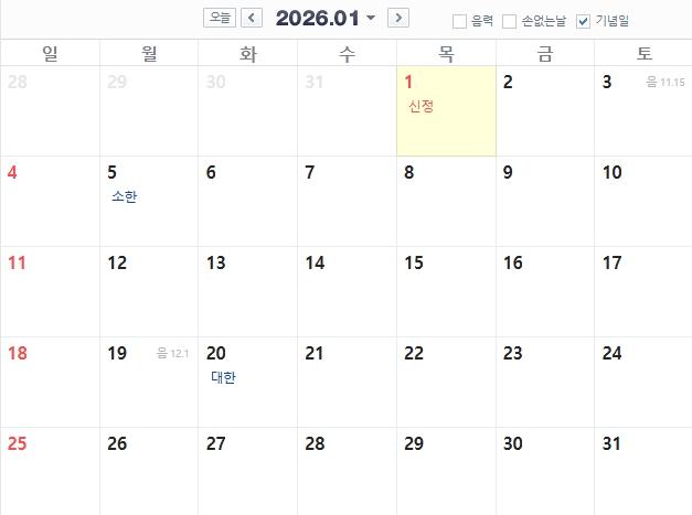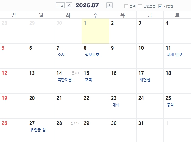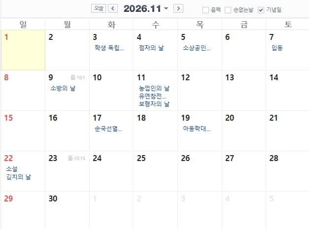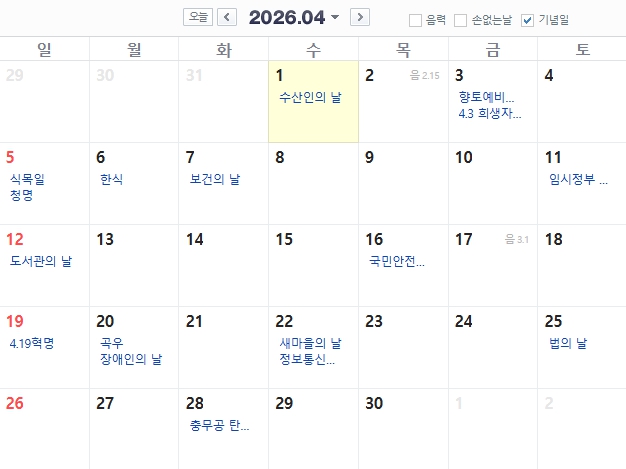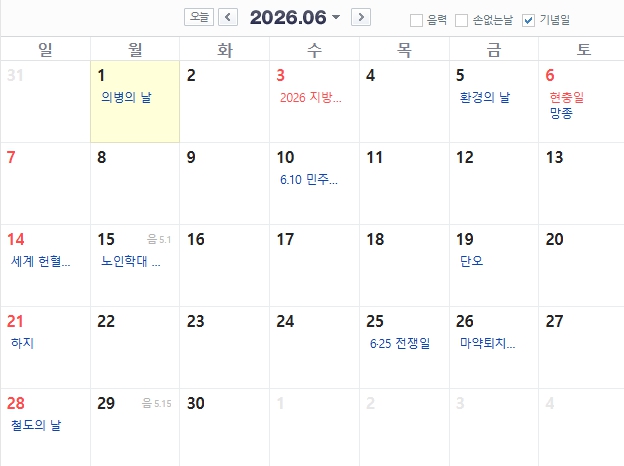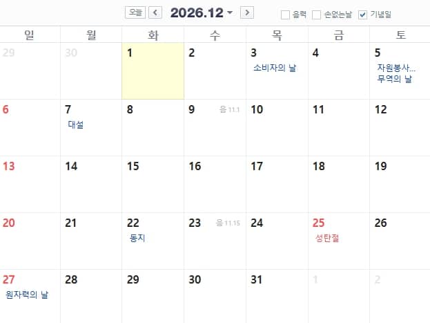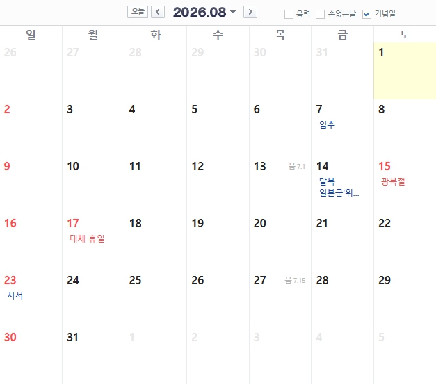 - 주말과 겹쳐 별도 대체공휴일 없음