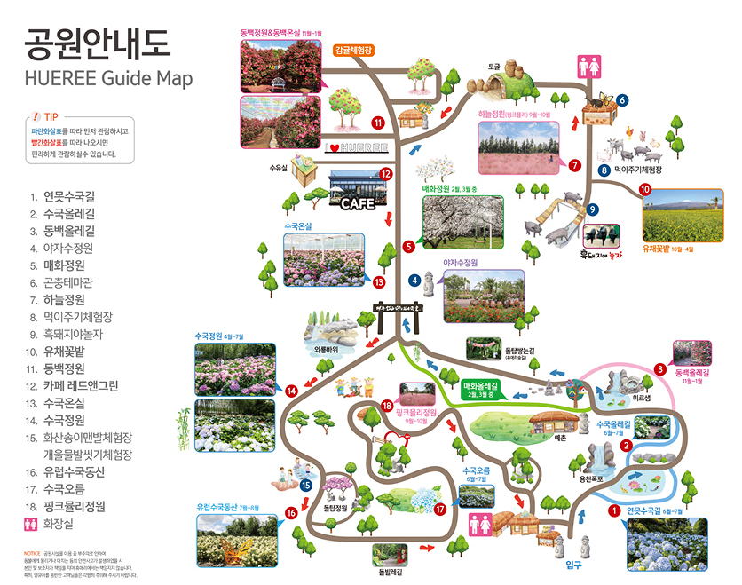 휴애리 곳곳에는 동백꽃으로 꾸며진 다양한 포토존이 마련되어 있습니다.