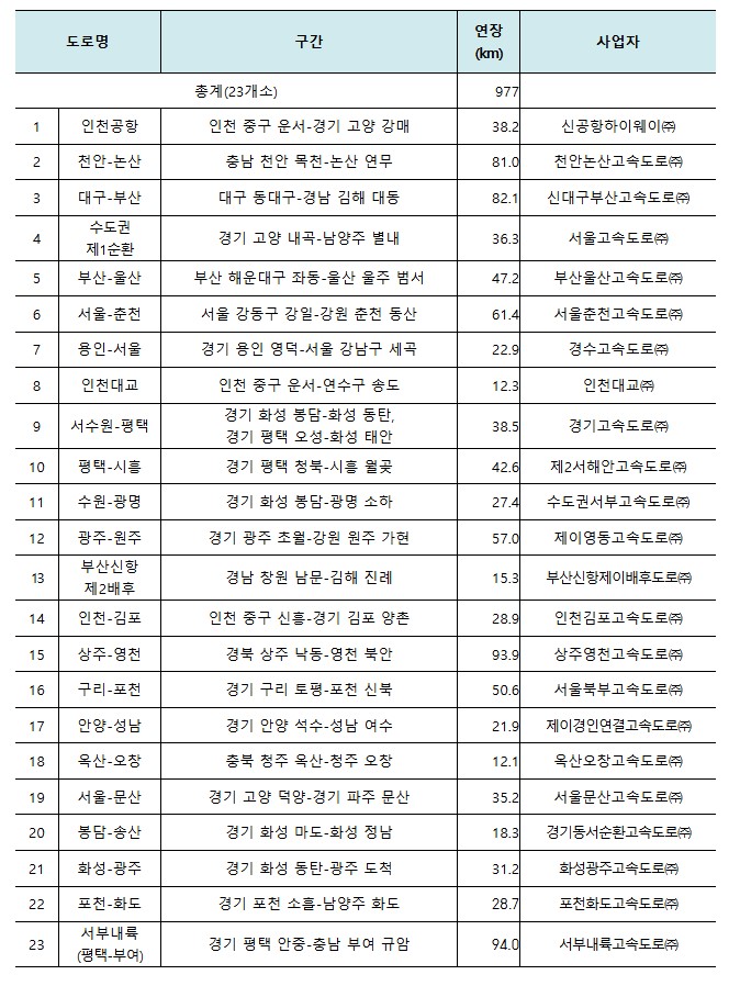 4. 23개 민자고속도로 목록