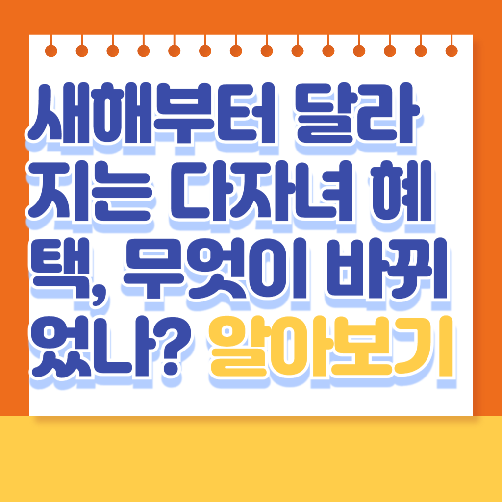 다자녀 가구 기준이 기존 3자녀에서 2자녀로 완화됨으로서 더 많은 가구가 혜택을 누릴 수 있을 것으로 기대됩니다.