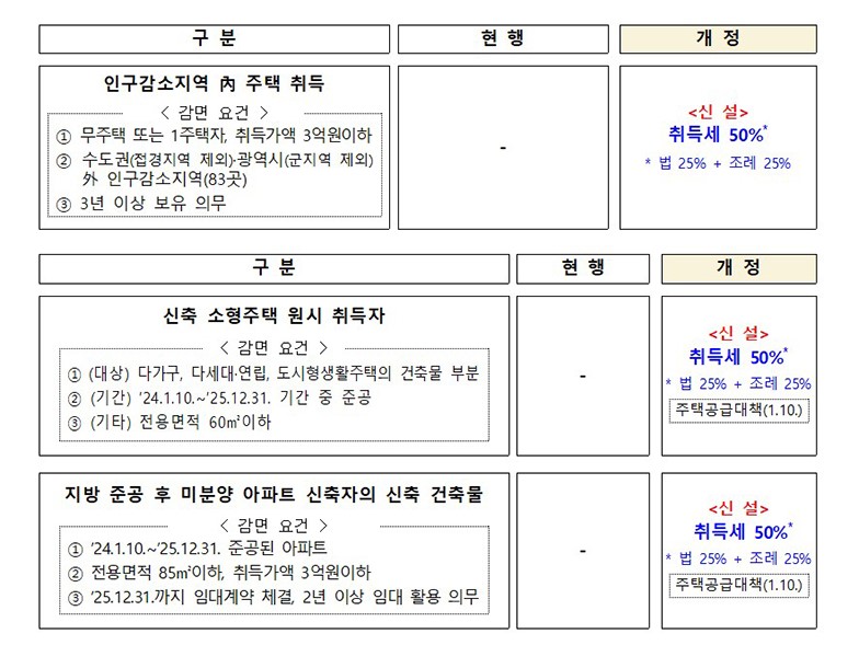 - 인구감소지역 주택 취득세 감면