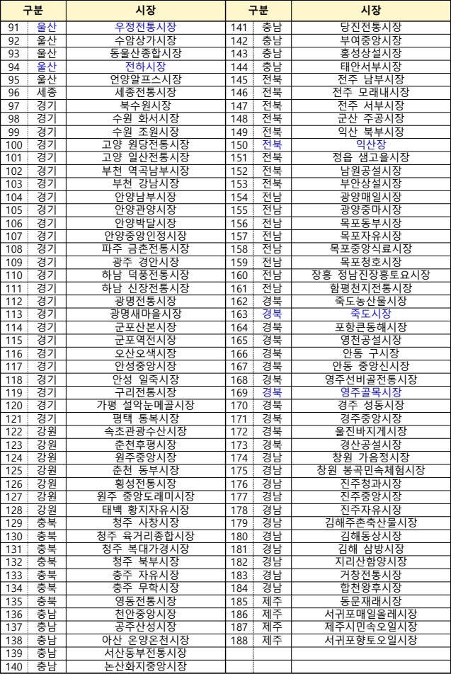 자세한 시장 목록은 공식 누리집에서 확인하실 수 있습니다.