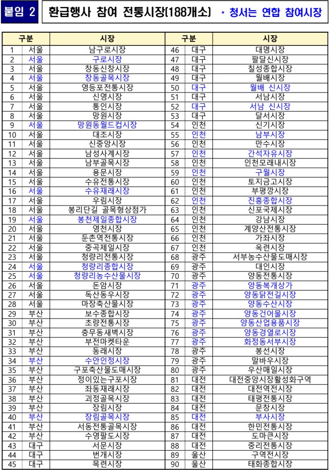 이번 행사에는 총 188개 전통시장이 참여합니다.