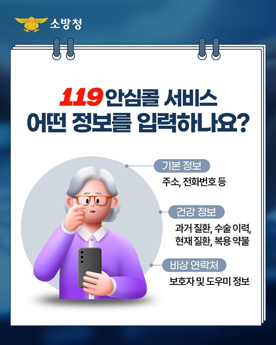 119 안심콜 서비스는 긴급 상황에서 환자의 인적사항, 병력, 복용 약물, 보호자 연락처 등을