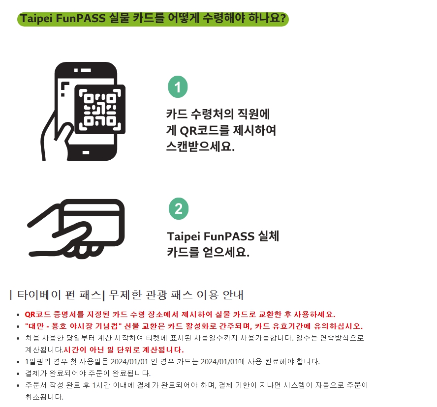 펀패스는 온라인에서 사전 구매한 후, 대만 도착 후 지정된 장소에서 실물 카드로 교환하면 됩니다.