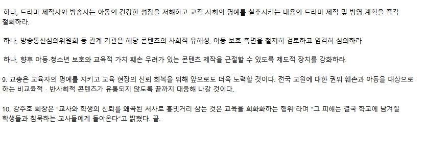 - 이 드라마는 교사의 전문성과 도덕성을 훼손하고